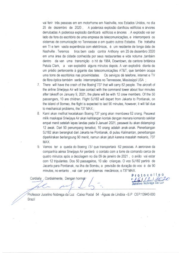 Queda de avião na Indonésia confirma as previsões de Jucelino Luz – a queda de um avião no dia 09/01/2020 .. A aeronave sumirá dos radares apenas quatro minutos da decolagem, perto da costa da capital Jacarta.