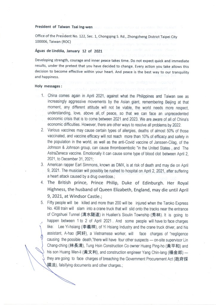 “I am not against vaccines, much less against science and scientists, we have brilliant names in the field of research, as well as fantastic discoveries, however, we know this time through the high spiritual information, that, possibly, the vaccine will not work as it should , the risk to public health is very high … There is a need to extend studies further, before applying them to humans. ”