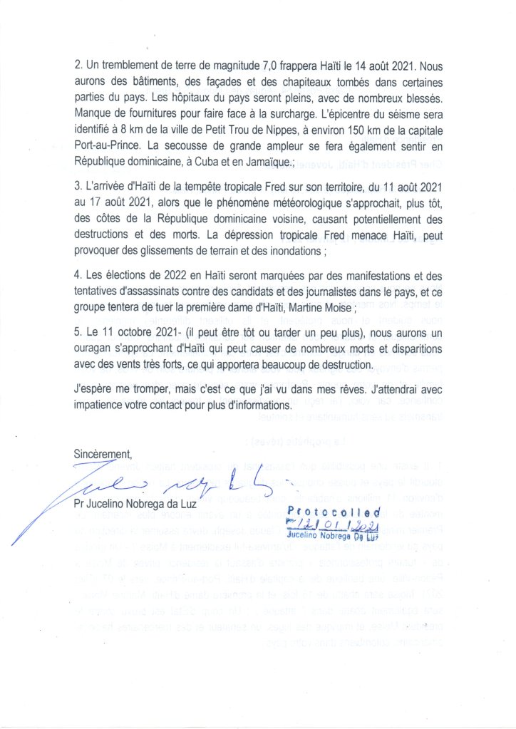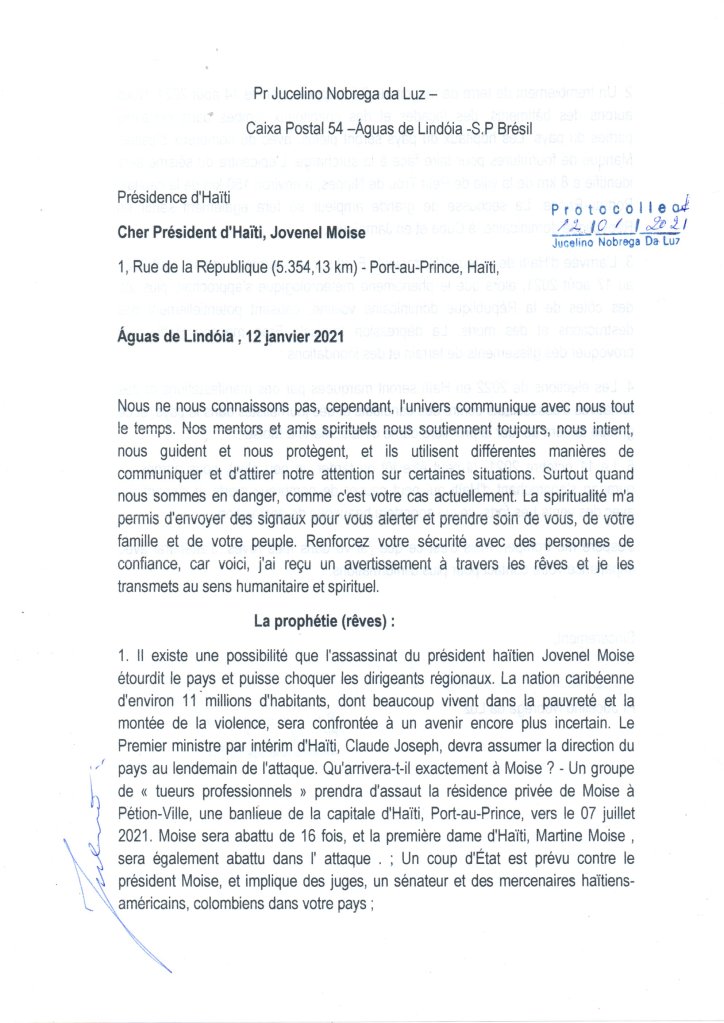 La predicción de Jucelino Luz se hizo realidad, según el ítem 28 de sus augurios y enviando un mensaje a las autoridades de ese país el 12 de enero de 2021.