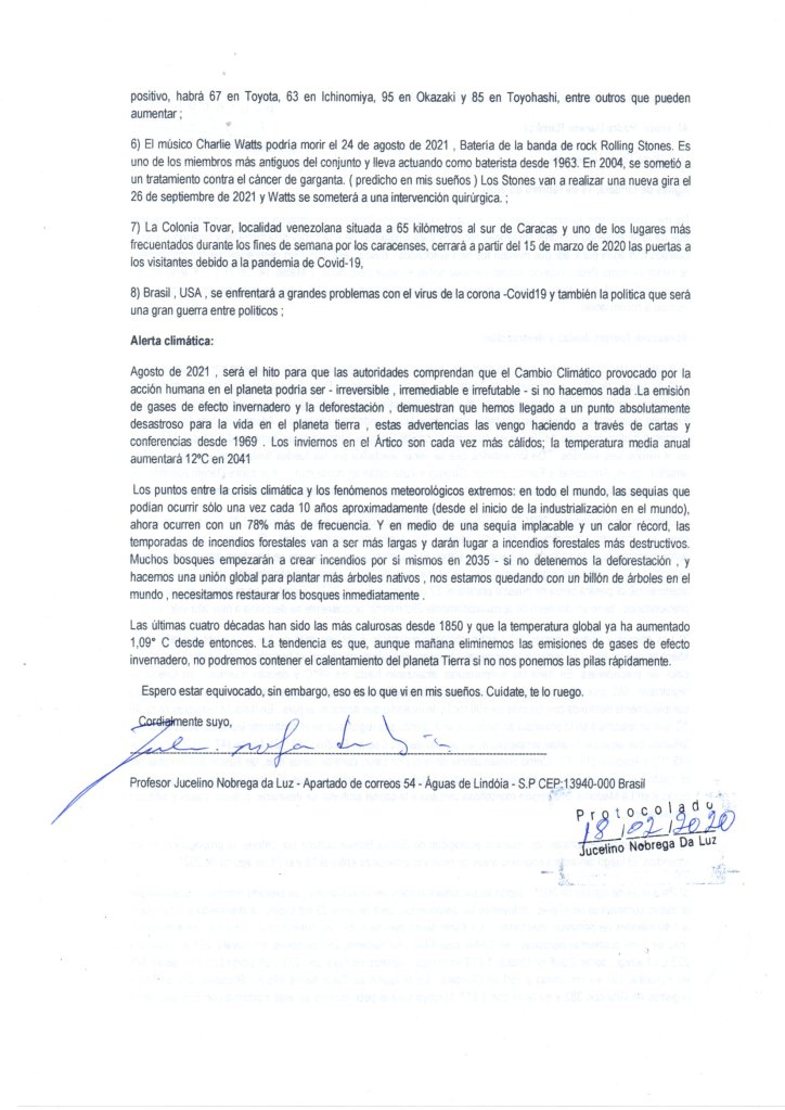Carta de 2020 – enviada para o Padre Dawin Ramirez de San Francisco de Tovar -Venezuela – tradução abaixo