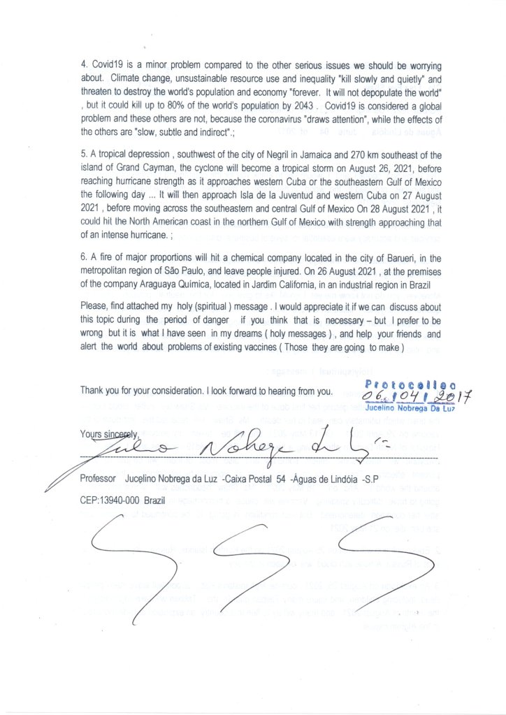 Jucelino Nóbrega da Luz, É escritor, ambientalista , orientador espiritual, visionário de grande credibilidade no mundo , apresentado em alguns meios de comunicação de massa no Brasil , Hong Kong , Japão, França , EUA , como um profeta que pode fazer previsões por meio de sonhos (sonhos lúcidos). Nasceu em Floriano, Maringá, Estado do Paraná. Brasil .Considerado um profeta da era moderna, orientador espiritual . .Tem um trabalho em favor da humanidade , proteção ambiental e da preservação do planeta . ジュセリーノノブレガダルス、 彼は作家、環境保護主義者、精神的顧問であり、世界で大きな信頼を築く先見の明を持っており、夢(明晰夢)を通して予測を行うことができる預言者として、ブラジル、香港、日本、フランス、米国のいくつかのマスメディアで紹介されています。 パラナ州マリンガのフロリアーノに生まれる。 ブラジル。現代の預言者、スピリチュアルガイドと見なされます。 。人類、環境保護、地球の保全に有利な働きをしています。 Jucelino Nóbrega da Luz, He is a writer, environmentalist, spiritual advisor, visionary of great credibility in the world, presented in some mass media in Brazil, Hong Kong, Japan, France, USA, as a prophet who can make predictions through dreams (lucid dreams) . Born in Floriano, Maringá, State of Paraná. Brazil. Considered a prophet of the modern era, spiritual guide. He has a job in favor of humanity, environmental protection and the preservation of the planet. Жуселино Нобрега да Луз, Он писатель, защитник окружающей среды, духовный наставник, провидец, пользующийся большим доверием в мире, представленный в некоторых средствах массовой информации в Бразилии, Гонконге, Японии, Франции, США как пророк, который может делать предсказания через сны (осознанные сны). Родился в Флориано, Маринга, штат Парана. Бразилия Считается пророком современной эпохи, духовным наставником. .Он работает на благо человечества, защиты окружающей среды и сохранения планеты. Jucelino Nóbrega da Luz, 그는 작가, 환경 운동가, 영적 고문, 세계에서 위대한 신뢰의 비전가이며, 꿈 (자각몽)을 통해 예언을 할 수있는 예언자로 브라질, 홍콩, 일본, 프랑스, ​​미국의 일부 대중 매체에 발표되었습니다. 파라나 주 마링가의 플로리 아노 출생. 브라질 : 현대 시대의 선지자, 영적 인도자로 간주됩니다. . 인류, 환경 보호 및 지구 보존을 위해 일하고 있습니다. Jucelino Nóbrega da Luz, C'est un écrivain, environnementaliste, conseiller spirituel, visionnaire d'une grande crédibilité dans le monde, présenté dans certains médias de masse au Brésil, Hong Kong, Japon, France, USA, comme un prophète capable de faire des prédictions à travers les rêves (rêves lucides). Né à Floriano, Maringá, État du Paraná. Brésil, considéré comme un prophète de l'ère moderne, guide spirituel. .Ouvre en faveur de l'humanité, de la protection de l'environnement et de la préservation de la planète. JucelinoNóbregada Luz, 他是一位作家,环境保护主义者,精神顾问,具有远见卓识的世界,曾在巴西,香港,日本,法国,美国的一些大众媒体上作过演讲,他是先知,可以通过梦(清醒的梦)做出预测。 出生于巴拉那州马林加的弗洛里亚诺。 巴西:被视为现代的先知,属灵向导。 致力于人类,环境保护和地球的保护。 Jucelino Nóbrega da Luz, Es escritor, ambientalista, asesor espiritual, visionario de gran credibilidad en el mundo, presentado en algunos medios de comunicación de Brasil, Hong Kong, Japón, Francia, Estados Unidos, como un profeta que puede hacer predicciones a través de los sueños (sueños lúcidos). Nacido en Floriano, Maringá, Estado de Paraná. Brasil Considerado profeta de la era moderna, guía espiritual. .Ha trabajado a favor de la humanidad, la protección del medio ambiente y la preservación del planeta. जुसेलिनो नोब्रेगा दा लूज़, वह एक लेखक, पर्यावरणविद्, आध्यात्मिक सलाहकार, दुनिया में महान विश्वसनीयता के दूरदर्शी, ब्राजील, हांगकांग, जापान, फ्रांस, संयुक्त राज्य अमेरिका में कुछ बड़े पैमाने पर मीडिया में प्रस्तुत किए गए एक पैगंबर हैं जो सपनों के माध्यम से भविष्यवाणियां कर सकते हैं (आकर्षक सपने)। फ्लोरानो, मारिंगा, पराना राज्य में जन्मे। ब्राजील। आधुनिक युग, आध्यात्मिक मार्गदर्शक का पैगंबर माना जाता है। .हास मानवता, पर्यावरण संरक्षण और ग्रह के संरक्षण के पक्ष में काम करता है। Jucelino Nóbrega da Luz, È scrittore, ambientalista, consigliere spirituale, visionario di grande credibilità nel mondo, presentato in alcuni mass media in Brasile, Hong Kong, Giappone, Francia, USA, come un profeta che può fare previsioni attraverso i sogni 