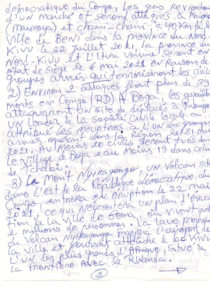 - Around 2 attacks will leave more than 39 dead in the Democratic Republic of Congo In Boga, attackers will attack an IDP site in Rubingo. A local civil society leader attributed the killings to one of the armed groups operating in the region on May 31, 2021 At least 20 civilians will be killed in Boga village and at least 19 in Tchabi village ..;