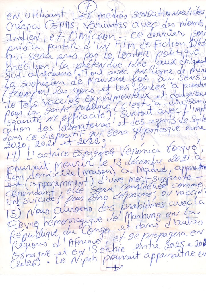 - Ebola will spread in the Republic of Congo and victimise many people in the near future , in many cases , there are involvements of biological experiments in that place , spread by external groups ,will kill many innocent people , and will emerge in Wuhan – in China , in September 2019, the covid19 , which will be released only on December 31, 2019 , could kill millions of people in the world – will become a pandemic , however, to be able to give vaccines in the people , will press with fear , panic , using sensationalist media , will create Cepas ,variants with names , Indian, and Omicron – the latter , will be taken from a 1963 fiction movie – which will be taken by Brazilian political leader , the supposed idea , to South African leaders ,. Everything, with a focus on suspicion of bad faith, in the sense of (deceiving) people and forcing them to take such experimental and dangerous vaccines to public health (i.e., without safety or effectiveness), especially with the involvement of laboratories and health agents in this scheme that will be gigantic between 2020 and 2021;