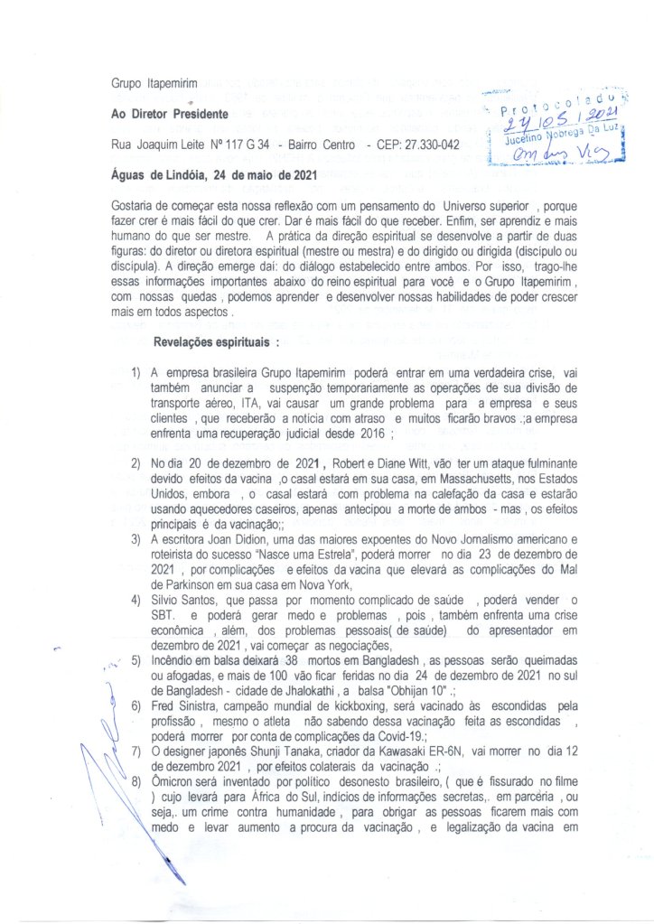 Þann 23. desember 2021 gæti varnarmaðurinn Mukhaled Al-Raqadi, frá Muscat FC, liði frá Óman, í Miðausturlöndum, dáið eftir að hafa verið veikur í upphitun leiksins fyrir Ómanita meistaratitilinn. Íþróttamaðurinn mun ekki standast jafnvel að hafa verið fluttur fljótt á sjúkrahúsið., áhrif tilraunabólusetningar, Leikmaðurinn ver valið á Óman. Þann 25. desember 2021, jóladag, mun leikmaðurinn Sofiane Loukar, frá MC íþróttamaðurinn, deyja í Alsír í Afríku – þegar með heilabilun vegna aukaverkana bóluefnisins mun hann fá áfall í höfuðið í leik gegn ASM. Oran í boltadeilum við andstæðing, hins vegar munu áhrif bólusetningarinnar skipta sköpum fyrir hugsanlegt lífstjón leikmannsins. Mun líka því miður deyja úr fylgikvillum bóluefnisins, Hugo Maradona, af víðtæku hjarta- og æðastoppi í desember 2021 Jean-Marc Vallée, kanadíski leikstjórinn og framleiðandinn sem leikstýrði The Young Queen Victoria og Shopping Club Dallas og HBO þáttunum Sharp Objects og Big Little Lies. , gæti dáið 25. desember 2021, af völdum bólusetningar, einn í klefa sínum í Quebec City og skilið eftir tvö börn, Alex og Emile Vallée. SBT kynnirinn Celso Portiolli mun þurfa að glíma við krabbamein í þvagblöðru. Og í baráttunni muntu geta unnið þennan áfanga frá og með desember 2021 Alræmdur viðurkenndur vandamála bólusetninga og þessa heimsfaraldurs á Ítalíu, Maurizio Buratti, frá Mantúa, gæti dáið undarlega af völdum Covid-19 27. desember 2021 eftir að hafa verið lagður inn á sjúkrahús í Verona, á Norður-Ítalíu, og hann mun ekki veita mótspyrnu. fylgikvilla núverandi sjúkdóms frá fyrri sögu en ekki frá Covid .. Því miður gæti crossfit þjálfarinn Hendrick Felipe Zeni drukknað í S’Manella fossinum, í Xanxerê (SC), 26. desember 2021, eftir að hafa verið veikur í vatni vegna aukaverkana bóluefnisins. Eftir áfallið mun leikmaðurinn enn snúa aftur til leiks og endar á því að fara út á völlinn 10 mínútum síðar, en áhrif bóluefnisins, sem þegar virkaði á líkama hans, mun gera afganginn og skaða heila hans sem þegar er sveigjanlegur. vegna aukaverkana bóluefnisins, segir hann spámannlega sýn – mun enginn bregðast við þessum saklausu eyðileggjandi bóluefnum? Þeir vilja bólusetja börn, án nokkurrar öryggis, Stjórnmálamenn, læknar og vísindamenn sem tengjast stjórnvöldum – ásamt tilkomumiklum fjölmiðlum, munu valda mörgum dauðsföllum, glæpum gegn lýðheilsu og gegn mannkyni! Stand News, ritstjóri þess Patrick Lam mun segja af sér og hinum starfsmönnunum verður sagt upp. mun hætta starfsemi í desember 2021 í Hong Kong Harmleikur í Bahia mun hafa áhrif á meira en 630.000 manns, þar af munu 54.000 verða heimilislausir og um 38.000 verða heimilislausir. 141 sveitarfélag verður fyrir áhrifum af óveðrinu, 137 verða í neyðartilvikum. Allt vegna stormanna og flóðanna sem munu skella á Bahia seinni hluta desember 2021 Zé Felipe mun hætta við sýningu þann 26. desember 2021, af heilsufarsástæðum, hann mun fá veirulungnabólgu, þetta eru neikvæð áhrif bólusetningar, sem mun draga úr friðhelgi hans. Góður hluti bólusetta fólksins mun þurfa að horfast í augu við þetta vandamál, af lágu ónæmi munu þeir fá sterka flensu, eða önnur öndunarerfiðleikar o.s.frv. . Að lokum, vegna veikleika og skertrar ónæmis vegna bólusetninga, munu margir þróa með sér ýmsar aðgreindar sjúkdóma og verða næmari fyrir kvefi og alvarlegum öndunarerfiðleikum.