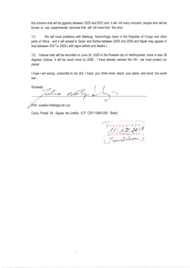 O le tusi o loo iai le valoaga na auina mai e se tagata Pasila o Jucelino Luz, o lē na taumafai e faaitiitia na feteenaʻiga e ala i le lapataʻia o faafitauli matuiā mo le lalolagi atoa. O le ala lea na fa’atulaga ai atunu’u na fa’asalaina le osofa’iga: Siamani, Peleseuma, Iunaite Setete, Farani, Isaraelu, Iapani, United Kingdom, Czech Republic, Turkey, Polani ma le tele o tagata Rusia.