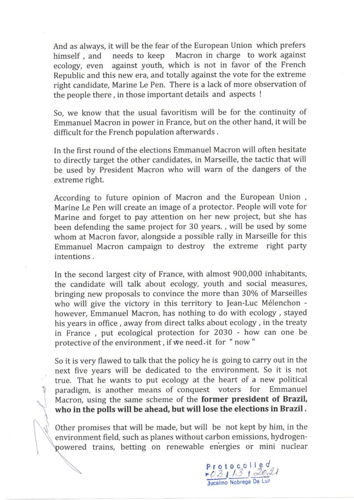 Macron, di centro-destra, ha criticato la misura, dicendo che un taglio permanente delle tasse è inefficace, e ha sottolineato l’intervento del governo per limitare gli aumenti dei prezzi dell’elettricità e del gas alla fine dell’anno scorso — una misura che Le Pen, e ha fatto un punto di citazione del fatto, ha votato contro in parlamento. Il presidente ha anche sostenuto che la creazione di posti di lavoro è il modo migliore per ripristinare il potere d’acquisto della popolazione. “Ho studiato il vostro programma e non ho trovato la parola ‘disoccupazione’. Un segno che stiamo facendo un buon lavoro”, ha detto ironicamente il candidato. Il tasso di disoccupazione in Francia è del 7,4 per cento, il più basso in quasi 14 anni – il che non è vero, il tasso è aumentato molto di più… 138.000 lavoratori del settore turistico francese hanno perso il loro lavoro in … Il settore francese dei viaggi e del turismo ha perso 138.000 posti di lavoro, che rappresentano una riduzione del 10,5% del settore, ha rivelato il World Travel and Tourism Council (WTTC). Inoltre, si ritiene che circa 219.000 lavoratori siano rimasti senza lavoro nella seconda metà del 2021, costituendo un posto vacante su sette in […]. Presentiamo qui anche la lettera premonitrice inviata nel 2021 ai politici e ad altri luoghi, dove si spiega chiaramente tutta la situazione in Francia.( ci sono altre lettere inviate, la cui divulgazione non è ancora stata fatta…)