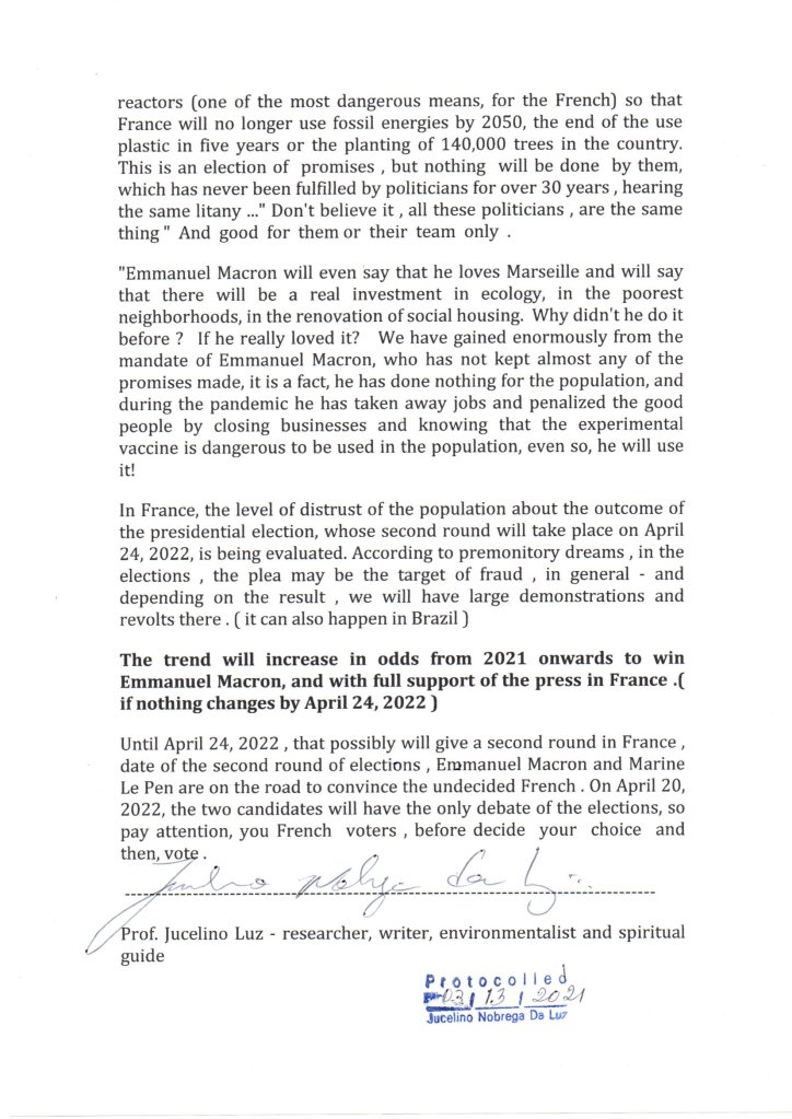 He is a writer, environmentalist, spiritual advisor, visionary of great credibility in the world, presented in some mass media in Brazil, Hong Kong, Japan, France, USA, as a prophet who can make predictions through dreams (lucid dreams) . Born in Floriano, Maringá, State of Paraná. Brazil. Considered a prophet of the modern era, spiritual guide. He has a job in favor of humanity, environmental protection and the preservation of the planet.