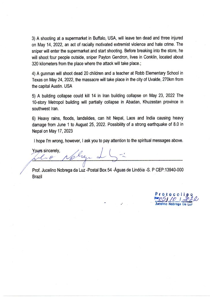 He is a writer, environmentalist, spiritual advisor, visionary of great credibility in the world, presented in some mass media in Brazil, Hong Kong, Japan, France, USA, as a prophet who can make predictions through dreams (lucid dreams) . Born in Floriano, Maringá, State of Paraná. Brazil. Considered a prophet of the modern era, spiritual guide. He has a job in favor of humanity, environmental protection and the preservation of the planet.