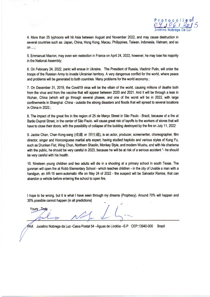 He is a writer, environmentalist, spiritual advisor, visionary of great credibility in the world, presented in some mass media in Brazil, Hong Kong, Japan, France, USA, as a prophet who can make predictions through dreams (lucid dreams) . Born in Floriano, Maringá, State of Paraná. Brazil. Considered a prophet of the modern era, spiritual guide. He has a job in favor of humanity, environmental protection and the preservation of the planet.