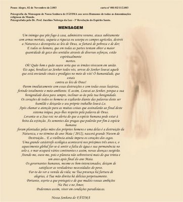 Jucelino Nóbrega da Luz, É escritor, ambientalista , orientador espiritual, visionário de grande credibilidade no mundo , apresentado em alguns meios de comunicação de massa no Brasil , Hong Kong , Japão, França , EUA , como um profeta que pode fazer previsões por meio de sonhos (sonhos lúcidos). Nasceu em Floriano, Maringá, Estado do Paraná. Brasil .Considerado um profeta da era moderna, orientador espiritual . .Tem um trabalho em favor da humanidade , proteção ambiental e da preservação do planeta . ジュセリーノノブレガダルス、 彼は作家、環境保護主義者、精神的顧問であり、世界で大きな信頼を築く先見の明を持っており、夢(明晰夢)を通して予測を行うことができる預言者として、ブラジル、香港、日本、フランス、米国のいくつかのマスメディアで紹介されています。 パラナ州マリンガのフロリアーノに生まれる。 ブラジル。現代の預言者、スピリチュアルガイドと見なされます。 。人類、環境保護、地球の保全に有利な働きをしています。 Jucelino Nóbrega da Luz, He is a writer, environmentalist, spiritual advisor, visionary of great credibility in the world, presented in some mass media in Brazil, Hong Kong, Japan, France, USA, as a prophet who can make predictions through dreams (lucid dreams) . Born in Floriano, Maringá, State of Paraná. Brazil. Considered a prophet of the modern era, spiritual guide. He has a job in favor of humanity, environmental protection and the preservation of the planet. Жуселино Нобрега да Луз, Он писатель, защитник окружающей среды, духовный наставник, провидец, пользующийся большим доверием в мире, представленный в некоторых средствах массовой информации в Бразилии, Гонконге, Японии, Франции, США как пророк, который может делать предсказания через сны (осознанные сны). Родился в Флориано, Маринга, штат Парана. Бразилия Считается пророком современной эпохи, духовным наставником. .Он работает на благо человечества, защиты окружающей среды и сохранения планеты. Jucelino Nóbrega da Luz, 그는 작가, 환경 운동가, 영적 고문, 세계에서 위대한 신뢰의 비전가이며, 꿈 (자각몽)을 통해 예언을 할 수있는 예언자로 브라질, 홍콩, 일본, 프랑스, ​​미국의 일부 대중 매체에 발표되었습니다. 파라나 주 마링가의 플로리 아노 출생. 브라질 : 현대 시대의 선지자, 영적 인도자로 간주됩니다. . 인류, 환경 보호 및 지구 보존을 위해 일하고 있습니다. Jucelino Nóbrega da Luz, C'est un écrivain, environnementaliste, conseiller spirituel, visionnaire d'une grande crédibilité dans le monde, présenté dans certains médias de masse au Brésil, Hong Kong, Japon, France, USA, comme un prophète capable de faire des prédictions à travers les rêves (rêves lucides). Né à Floriano, Maringá, État du Paraná. Brésil, considéré comme un prophète de l'ère moderne, guide spirituel. .Ouvre en faveur de l'humanité, de la protection de l'environnement et de la préservation de la planète. JucelinoNóbregada Luz, 他是一位作家,环境保护主义者,精神顾问,具有远见卓识的世界,曾在巴西,香港,日本,法国,美国的一些大众媒体上作过演讲,他是先知,可以通过梦(清醒的梦)做出预测。 出生于巴拉那州马林加的弗洛里亚诺。 巴西:被视为现代的先知,属灵向导。 致力于人类,环境保护和地球的保护。 Jucelino Nóbrega da Luz, Es escritor, ambientalista, asesor espiritual, visionario de gran credibilidad en el mundo, presentado en algunos medios de comunicación de Brasil, Hong Kong, Japón, Francia, Estados Unidos, como un profeta que puede hacer predicciones a través de los sueños (sueños lúcidos). Nacido en Floriano, Maringá, Estado de Paraná. Brasil Considerado profeta de la era moderna, guía espiritual. .Ha trabajado a favor de la humanidad, la protección del medio ambiente y la preservación del planeta. जुसेलिनो नोब्रेगा दा लूज़, वह एक लेखक, पर्यावरणविद्, आध्यात्मिक सलाहकार, दुनिया में महान विश्वसनीयता के दूरदर्शी, ब्राजील, हांगकांग, जापान, फ्रांस, संयुक्त राज्य अमेरिका में कुछ बड़े पैमाने पर मीडिया में प्रस्तुत किए गए एक पैगंबर हैं जो सपनों के माध्यम से भविष्यवाणियां कर सकते हैं (आकर्षक सपने)। फ्लोरानो, मारिंगा, पराना राज्य में जन्मे। ब्राजील। आधुनिक युग, आध्यात्मिक मार्गदर्शक का पैगंबर माना जाता है। .हास मानवता, पर्यावरण संरक्षण और ग्रह के संरक्षण के पक्ष में काम करता है। Jucelino Nóbrega da Luz, È scrittore, ambientalista, consigliere spirituale, visionario di grande credibilità nel mondo, presentato in alcuni mass media in Brasile, Hong Kong, Giappone, Francia, USA, come un profeta che può fare previsioni attraverso i sogni 