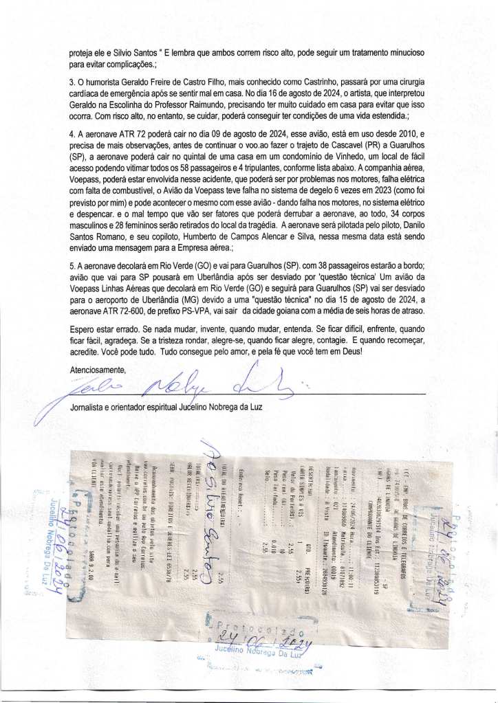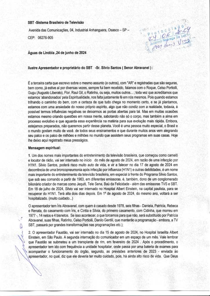 I also leave here one of the last three letters sent on June 24, 2024, with warnings of the predictions received through premonitory dreams (or astral travel)