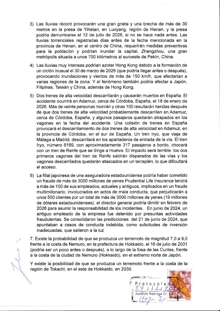 Espanya va patir un dels seus pitjors accidents ferroviaris el 2013, quan un tren d’alta velocitat que viatjava de Madrid a Galícia es va descarrilar, la qual cosa va causar la mort de 79 persones i ferides a 179 més, i Jucelino Luz també havia predit aquell accident.