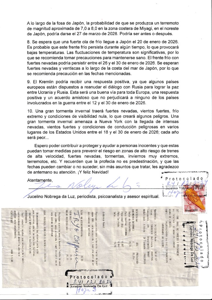 Jucelino Nóbrega da Luz, É escritor, ambientalista , orientador espiritual, visionário de grande credibilidade no mundo , apresentado em alguns meios de comunicação de massa no Brasil , Hong Kong , Japão, França , EUA , como um profeta que pode fazer previsões por meio de sonhos (sonhos lúcidos). Nasceu em Floriano, Maringá, Estado do Paraná. Brasil .Considerado um profeta da era moderna, orientador espiritual . .Tem um trabalho em favor da humanidade , proteção ambiental e da preservação do planeta . ジュセリーノノブレガダルス、 彼は作家、環境保護主義者、精神的顧問であり、世界で大きな信頼を築く先見の明を持っており、夢(明晰夢)を通して予測を行うことができる預言者として、ブラジル、香港、日本、フランス、米国のいくつかのマスメディアで紹介されています。 パラナ州マリンガのフロリアーノに生まれる。 ブラジル。現代の預言者、スピリチュアルガイドと見なされます。 。人類、環境保護、地球の保全に有利な働きをしています。 Jucelino Nóbrega da Luz, He is a writer, environmentalist, spiritual advisor, visionary of great credibility in the world, presented in some mass media in Brazil, Hong Kong, Japan, France, USA, as a prophet who can make predictions through dreams (lucid dreams) . Born in Floriano, Maringá, State of Paraná. Brazil. Considered a prophet of the modern era, spiritual guide. He has a job in favor of humanity, environmental protection and the preservation of the planet. Жуселино Нобрега да Луз, Он писатель, защитник окружающей среды, духовный наставник, провидец, пользующийся большим доверием в мире, представленный в некоторых средствах массовой информации в Бразилии, Гонконге, Японии, Франции, США как пророк, который может делать предсказания через сны (осознанные сны). Родился в Флориано, Маринга, штат Парана. Бразилия Считается пророком современной эпохи, духовным наставником. .Он работает на благо человечества, защиты окружающей среды и сохранения планеты. Jucelino Nóbrega da Luz, 그는 작가, 환경 운동가, 영적 고문, 세계에서 위대한 신뢰의 비전가이며, 꿈 (자각몽)을 통해 예언을 할 수있는 예언자로 브라질, 홍콩, 일본, 프랑스, ​​미국의 일부 대중 매체에 발표되었습니다. 파라나 주 마링가의 플로리 아노 출생. 브라질 : 현대 시대의 선지자, 영적 인도자로 간주됩니다. . 인류, 환경 보호 및 지구 보존을 위해 일하고 있습니다. Jucelino Nóbrega da Luz, C'est un écrivain, environnementaliste, conseiller spirituel, visionnaire d'une grande crédibilité dans le monde, présenté dans certains médias de masse au Brésil, Hong Kong, Japon, France, USA, comme un prophète capable de faire des prédictions à travers les rêves (rêves lucides). Né à Floriano, Maringá, État du Paraná. Brésil, considéré comme un prophète de l'ère moderne, guide spirituel. .Ouvre en faveur de l'humanité, de la protection de l'environnement et de la préservation de la planète. JucelinoNóbregada Luz, 他是一位作家,环境保护主义者,精神顾问,具有远见卓识的世界,曾在巴西,香港,日本,法国,美国的一些大众媒体上作过演讲,他是先知,可以通过梦(清醒的梦)做出预测。 出生于巴拉那州马林加的弗洛里亚诺。 巴西:被视为现代的先知,属灵向导。 致力于人类,环境保护和地球的保护。 Jucelino Nóbrega da Luz, Es escritor, ambientalista, asesor espiritual, visionario de gran credibilidad en el mundo, presentado en algunos medios de comunicación de Brasil, Hong Kong, Japón, Francia, Estados Unidos, como un profeta que puede hacer predicciones a través de los sueños (sueños lúcidos). Nacido en Floriano, Maringá, Estado de Paraná. Brasil Considerado profeta de la era moderna, guía espiritual. .Ha trabajado a favor de la humanidad, la protección del medio ambiente y la preservación del planeta. जुसेलिनो नोब्रेगा दा लूज़, वह एक लेखक, पर्यावरणविद्, आध्यात्मिक सलाहकार, दुनिया में महान विश्वसनीयता के दूरदर्शी, ब्राजील, हांगकांग, जापान, फ्रांस, संयुक्त राज्य अमेरिका में कुछ बड़े पैमाने पर मीडिया में प्रस्तुत किए गए एक पैगंबर हैं जो सपनों के माध्यम से भविष्यवाणियां कर सकते हैं (आकर्षक सपने)। फ्लोरानो, मारिंगा, पराना राज्य में जन्मे। ब्राजील। आधुनिक युग, आध्यात्मिक मार्गदर्शक का पैगंबर माना जाता है। .हास मानवता, पर्यावरण संरक्षण और ग्रह के संरक्षण के पक्ष में काम करता है। Jucelino Nóbrega da Luz, È scrittore, ambientalista, consigliere spirituale, visionario di grande credibilità nel mondo, presentato in alcuni mass media in Brasile, Hong Kong, Giappone, Francia, USA, come un profeta che può fare previsioni attraverso i sogni 